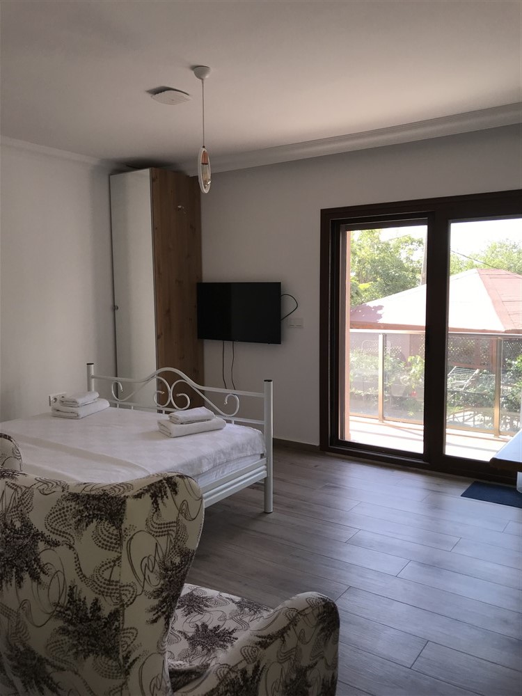 Akyarlar Köy Merkezi’nde konumlanan teras altı dairemiz; konforlu ve geniş yaşam alanlarıyla keyifli bir konaklama sunar.